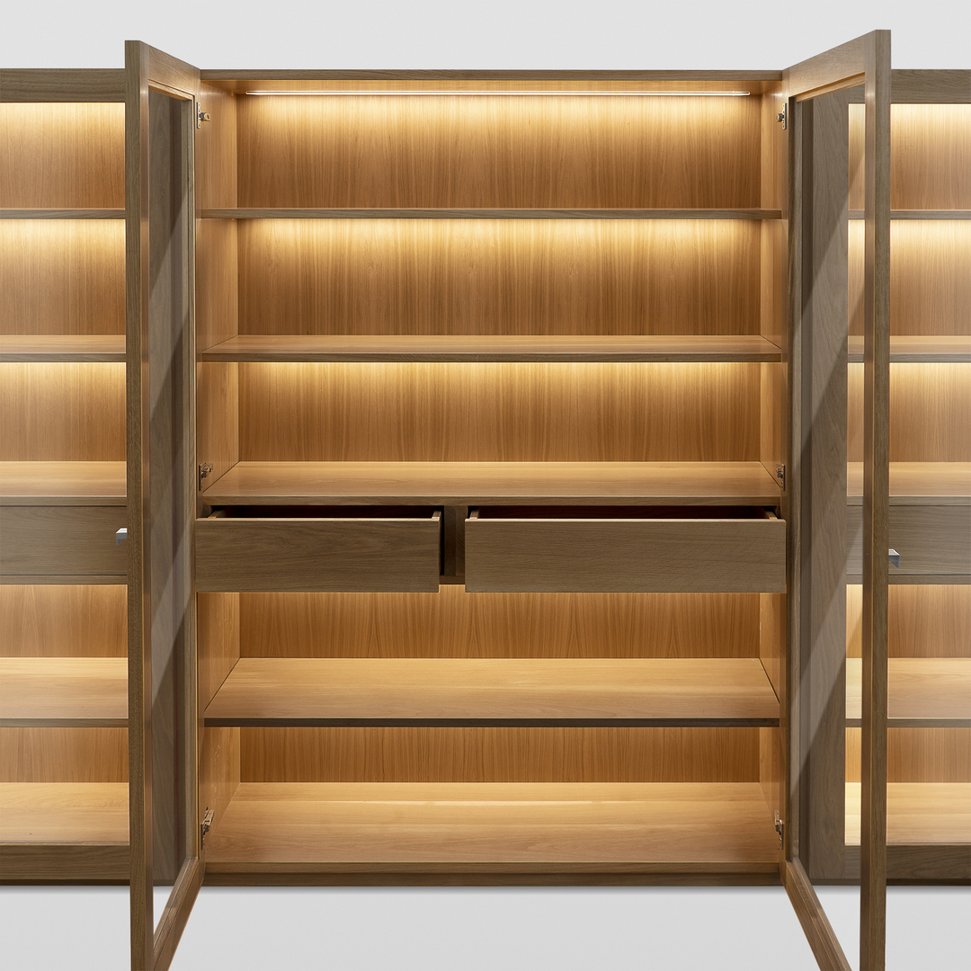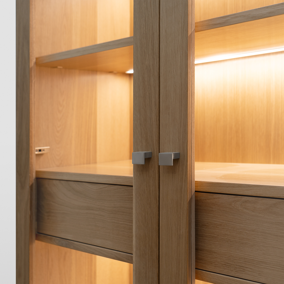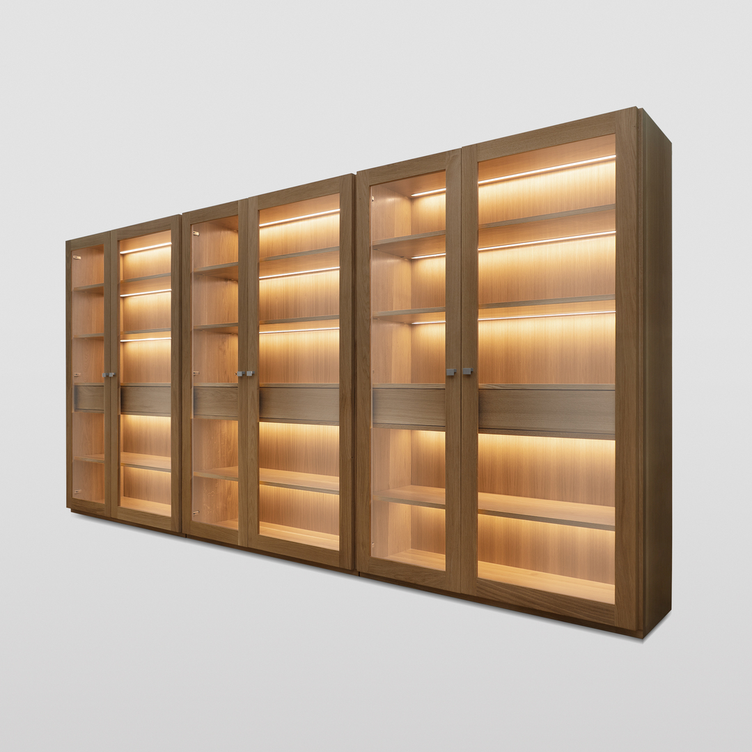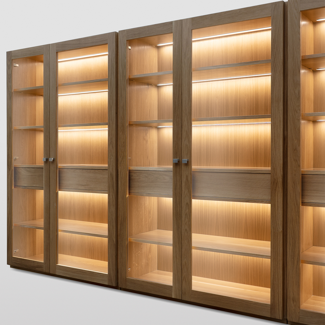 Jedes Stück kann genau nach Ihren Bedürfnissen angepasst werden, sowohl in den Abmessungen als auch in den Oberflächen. Wählen Sie aus einer Reihe von Holzarten und Oberflächen, um Ihr perfektes Bücherregal zu gestalten.