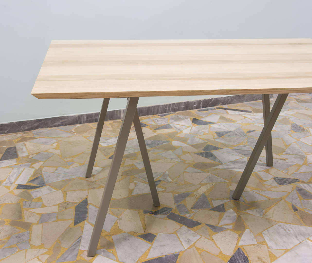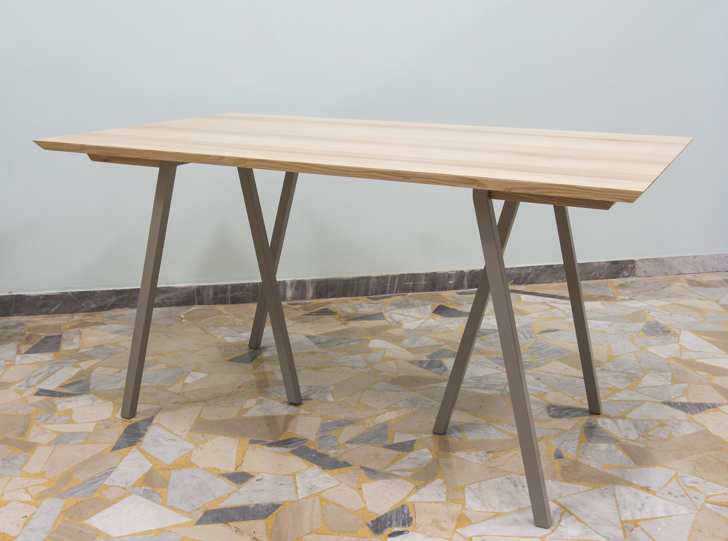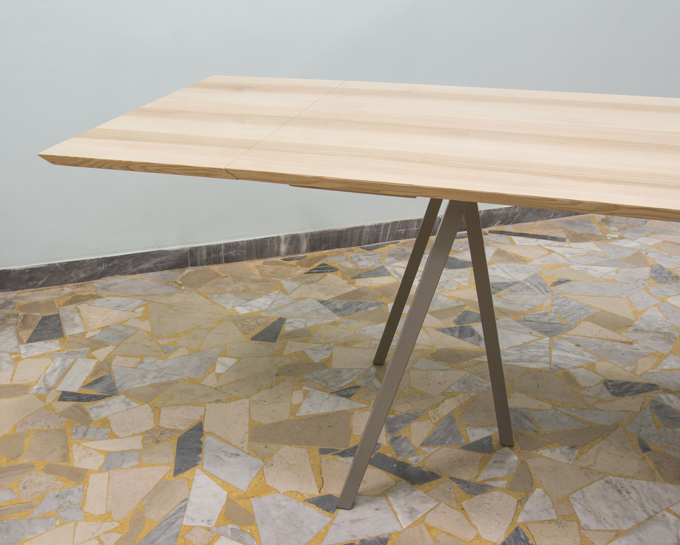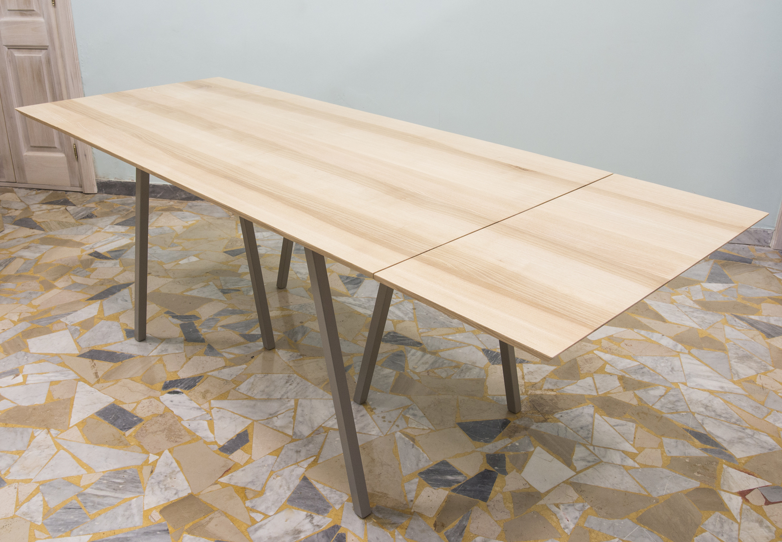 Dieser Tisch im skandinavischen Stil hat: die Oberfläche aus Esche Massivholz und die Beine aus Gris Metall. Er wird mit zwei Verlängerungen jeder von 37cm ausgestatten. Der Tisch wird mit Bienenwachs poliert.
