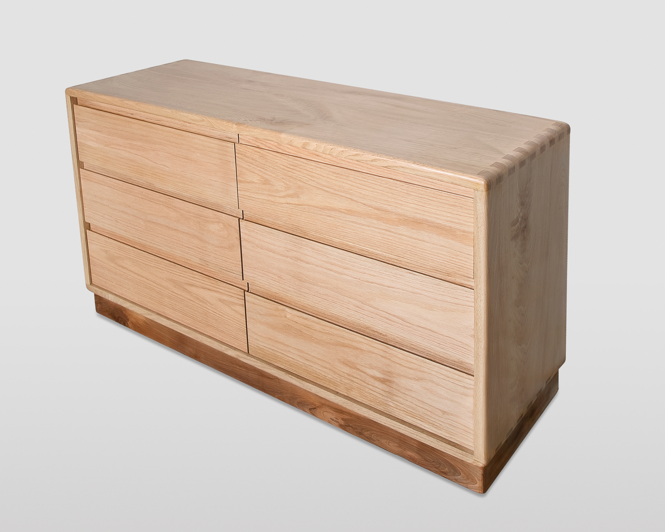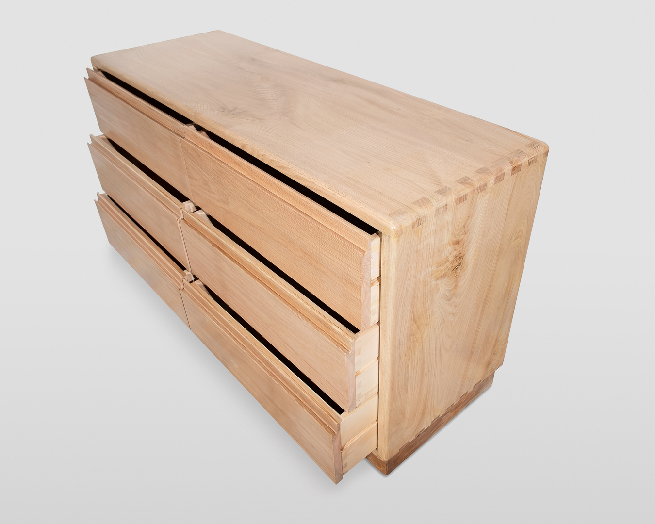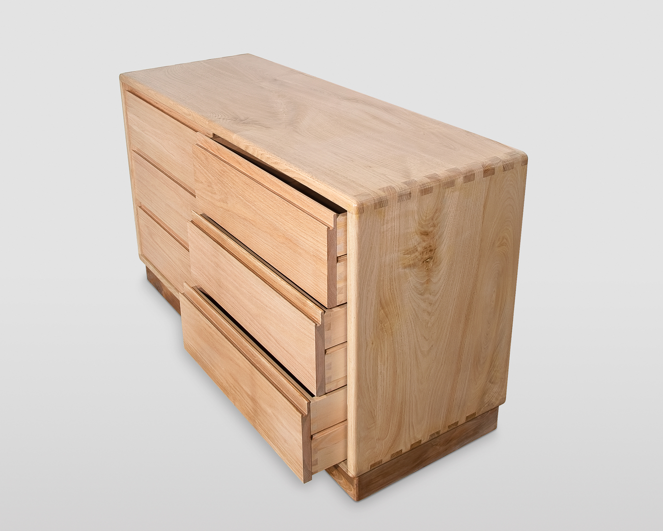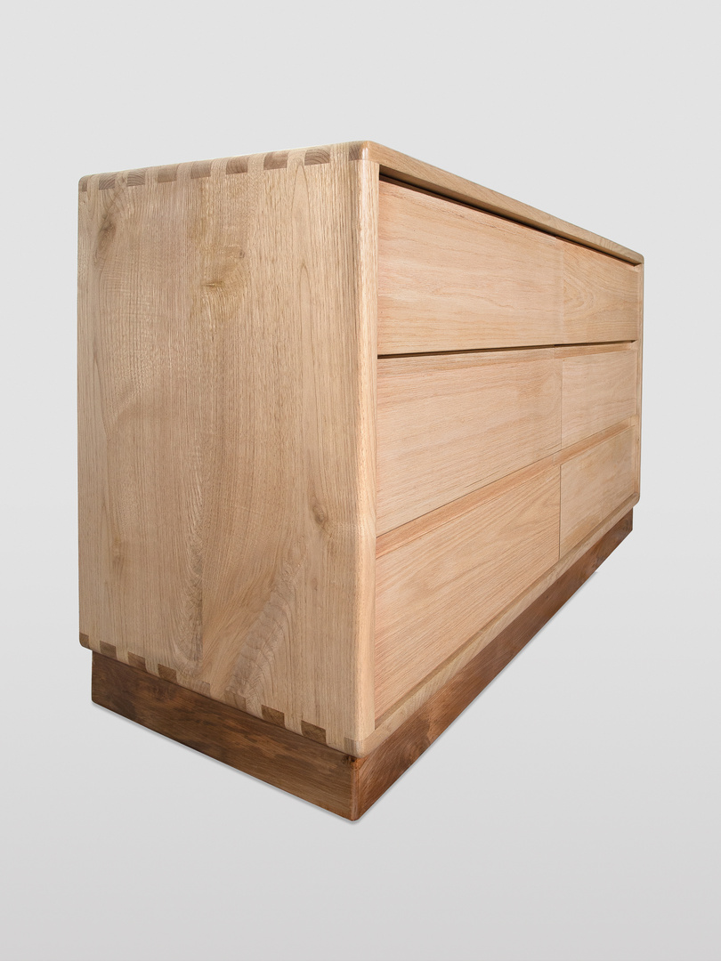 Außergewöhnliche Kommode mit sechs Schubladen, vollständig aus Massivholz gefertigt. Handgemachte Fertigung und Verarbeitungen von höchster Qualität. Zeitgenössisches Design mit einfachen und schlichten Formen im Minimal-Stil. Das Hauptmerkmal dieser Kommode ist die Struktur, die vollständig mit Nuten und Federverbindungen zusammengebaut und anschließend abgerundet wurde. Diese hochwertige Bearbeitung verleiht der Kommode eine einzigartige und wertvolle Eigenschaft. Schubladen ohne Griffe, die Öffnung wird durch elegante Nuten an der Vorderseite ermöglicht. Verwendete Hölzer sind alle Massivholz und wir haben Kastanie für die Struktur, Eiche für die Schubladenfronten und Walnuss für die Sockelleisten kombiniert. Innenstruktur der Schubladen mit Nuten und Federverbindungen gebaut und mit Holzführungsschienen. Lackierung mit umweltfreundlichen Wasserlacken ohne schädliche Emissionen und manuelle Politur mit Bienenwachs für eine zusätzliche Prämie, die aufgrund ihres verführerischen matte Satin-Effekts hinzugefügt wurde. Maßanfertigung: Wir können diese Kommode in verschiedenen Größen, mit anderen Holzarten, Farben und Oberflächen herstellen. Kontaktieren Sie uns für ein individuelles Angebot