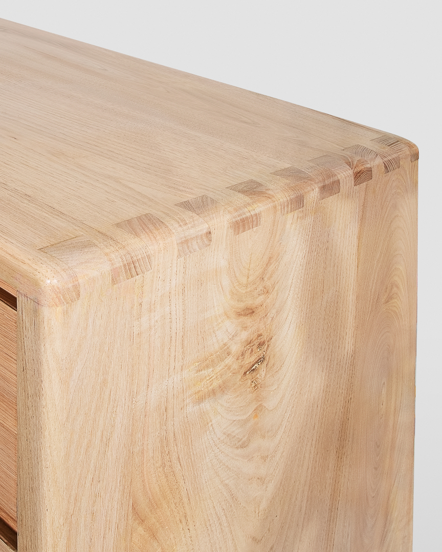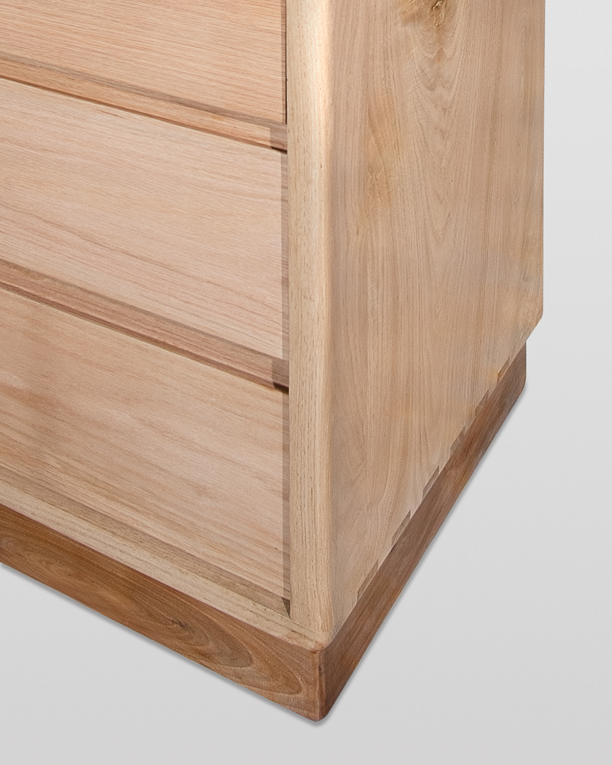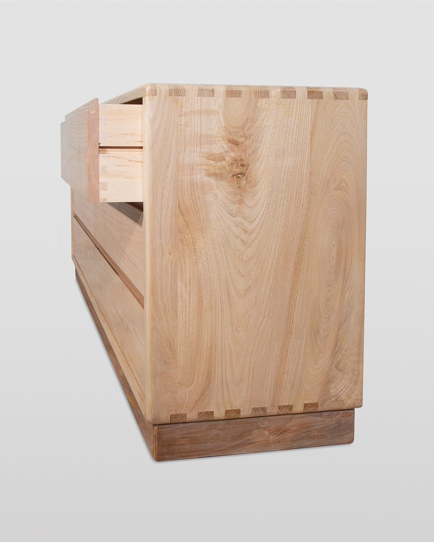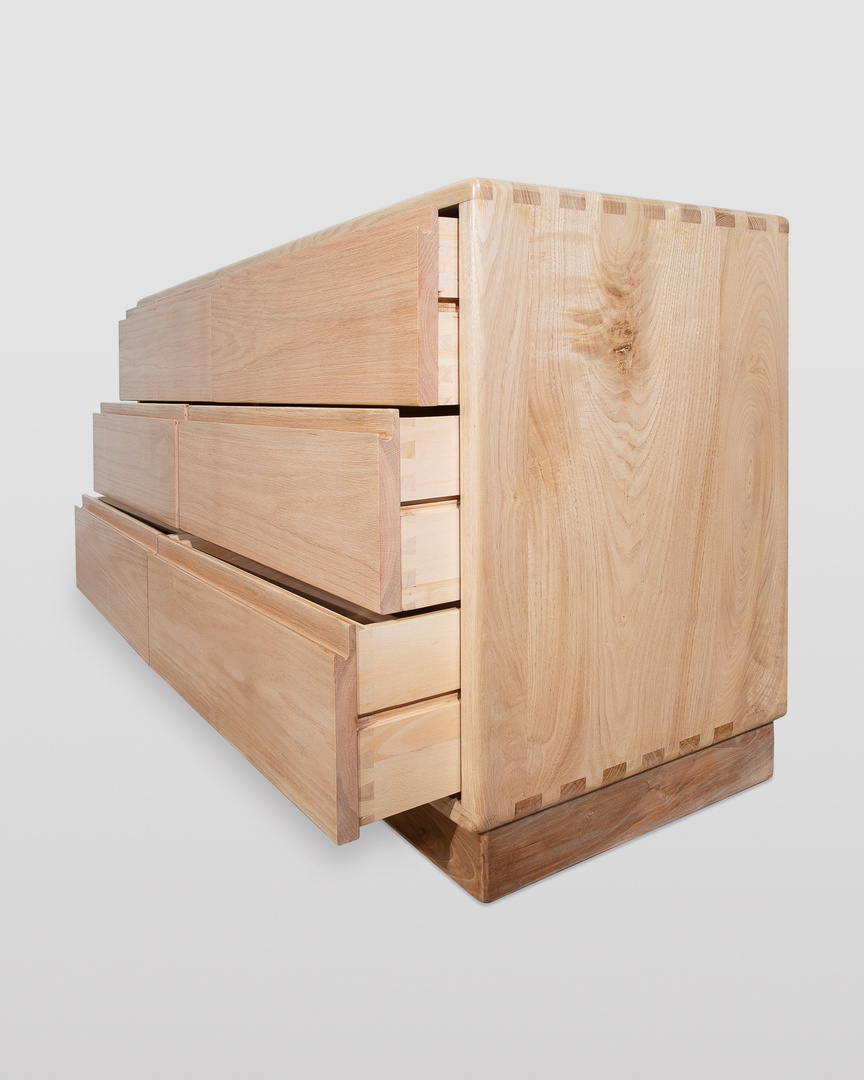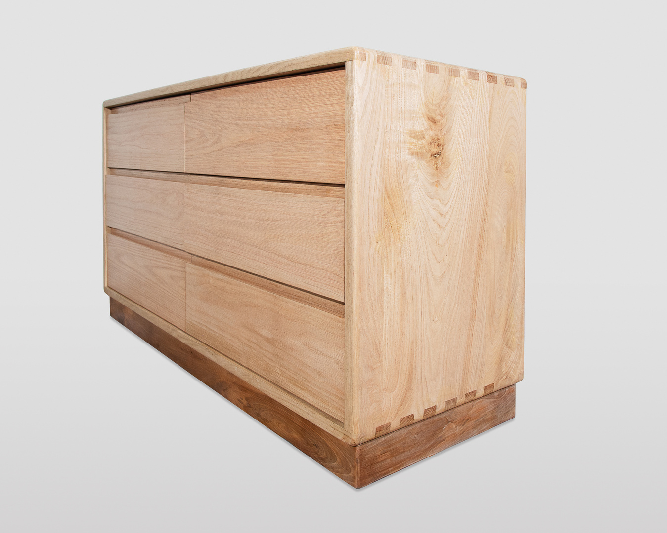 Außergewöhnliche Kommode mit sechs Schubladen, vollständig aus Massivholz gefertigt. Handgemachte Fertigung und Verarbeitungen von höchster Qualität. Zeitgenössisches Design mit einfachen und schlichten Formen im Minimal-Stil. Das Hauptmerkmal dieser Kommode ist die Struktur, die vollständig mit Nuten und Federverbindungen zusammengebaut und anschließend abgerundet wurde. Diese hochwertige Bearbeitung verleiht der Kommode eine einzigartige und wertvolle Eigenschaft. Schubladen ohne Griffe, die Öffnung wird durch elegante Nuten an der Vorderseite ermöglicht. Verwendete Hölzer sind alle Massivholz und wir haben Kastanie für die Struktur, Eiche für die Schubladenfronten und Walnuss für die Sockelleisten kombiniert. Innenstruktur der Schubladen mit Nuten und Federverbindungen gebaut und mit Holzführungsschienen. Lackierung mit umweltfreundlichen Wasserlacken ohne schädliche Emissionen und manuelle Politur mit Bienenwachs für eine zusätzliche Prämie, die aufgrund ihres verführerischen matte Satin-Effekts hinzugefügt wurde. Maßanfertigung: Wir können diese Kommode in verschiedenen Größen, mit anderen Holzarten, Farben und Oberflächen herstellen. Kontaktieren Sie uns für ein individuelles Angebot