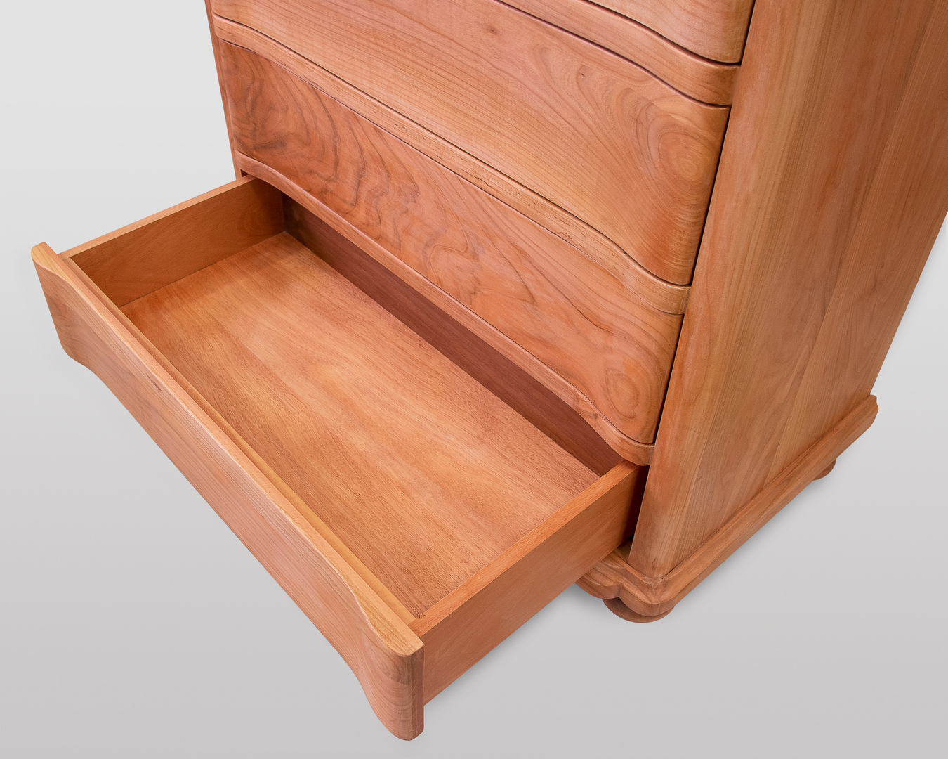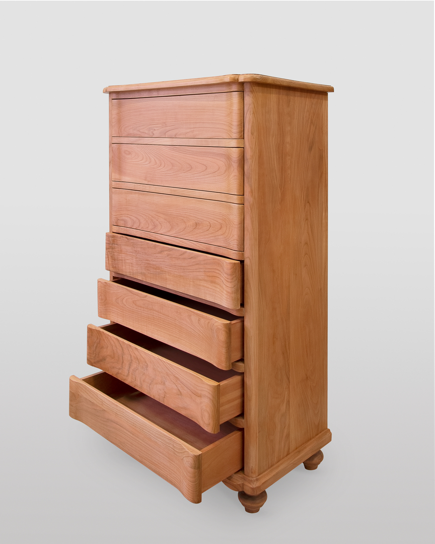 Kommode (Tallboy) mit sieben Schubladen ganz aus Kirschmassivholz. Erlesene Handarbeit, zur Gänze in Italien hergestellt mit besonderer Liebe zum Detail.