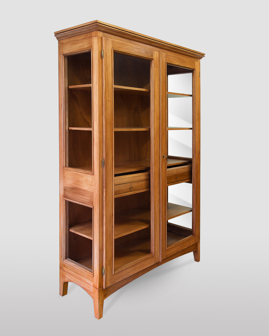 Vitrine mit zwei Türen komplett aus massivem Toulipier Holz. Handgefertigt, auch die Verzierungen sind von Hand realisiert.