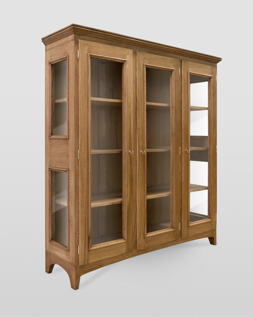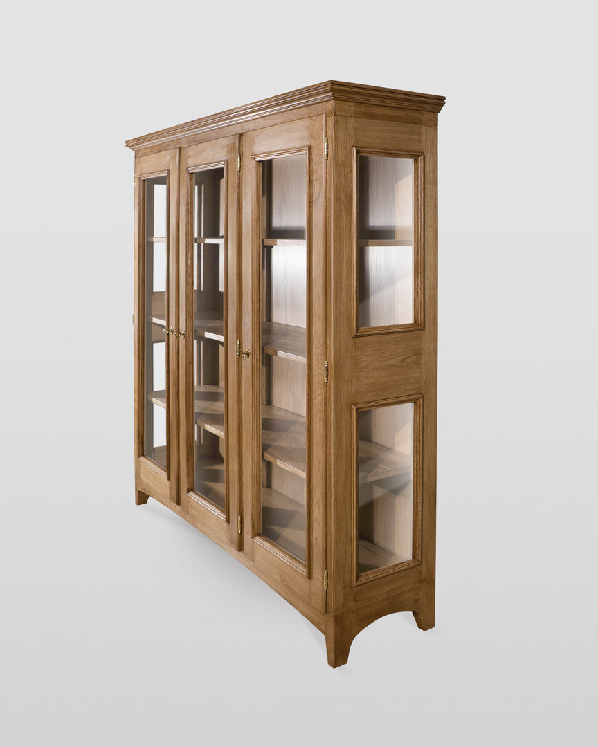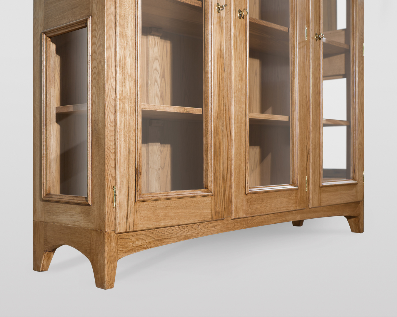 Handgemachtes Bücherregal aus Massivkastanie - perfekt für jedes Zuhause! Ausgestattet mit drei Flügeltüren, die mit einem doppeltem Haken verschlossen werden, um ein immer perfektes Schließen zu gewährleisten und Verformungen im Laufe der Zeit zu vermeiden. Das Regal ist in drei Fächer unterteilt und verfügt über Regale aus Massivkastanie. Die Türen sind mit fein gearbeiteten überlappenden Rahmen verziert und der Top hat einen imposanten Abschlussrahmen. Das geschwungene Gestell hat eckige Füße und der Aufbau der Seitenwände "A-Rahmen" gewährleistet die erforderliche Robustheit und Stabilität des Regals. Politur mit umweltfreundlichen Wasserbasislacken und manuelle Endbearbeitung mit Bienenwachs - für eine hochwertige und langlebige Oberfläche. Das Regal wird komplett zerlegt versandt und wird mit Anweisungen für eine einfache und schnelle Montage geliefert, die vollständig autonom durchgeführt werden kann. Wir können dieses handgemachte Bücherregal aus Massivkastanie auch auf Maß herstellen, mit verschiedenen Farben und Holzarten. Kontaktieren Sie uns für ein personalisiertes Angebot.