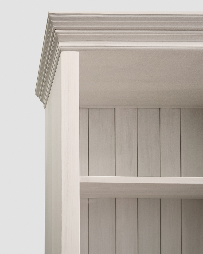 Die hochwertige Bücherwand aus massivem Lindenholz wurde handwerklich hergestellt und besteht aus einem Mittelteil und acht höhenverstellbaren Regalböden. Das Top ist mit einem eleganten Rahmen verziert und das Unterteil verfügt über eine lineare Sockelleiste, die zurückgesetzt ist. Das Rückwand besteht aus Holzlatten. Die Bücherwand ist in Weiß mit sichtbaren Holzmaserungen lackiert und ausschließlich mit umweltfreundlichen, emissionsfreien Wasserlacken behandelt. Das Finish wurde von Hand mit Bienenwachs poliert, um einen satinierten, matter Effekt zu erzielen. Die Bücherwand ist vollständig demontierbar und wird mit Anleitungen für eine einfache und schnelle Montage geliefert, die von jedem selbst durchgeführt werden kann. Wir können diese Bücherwand in verschiedenen Holzarten, Größen und Oberflächen anfertigen. Kontaktieren Sie uns für ein individuelles Angebot. Designerin: Erika Gambella