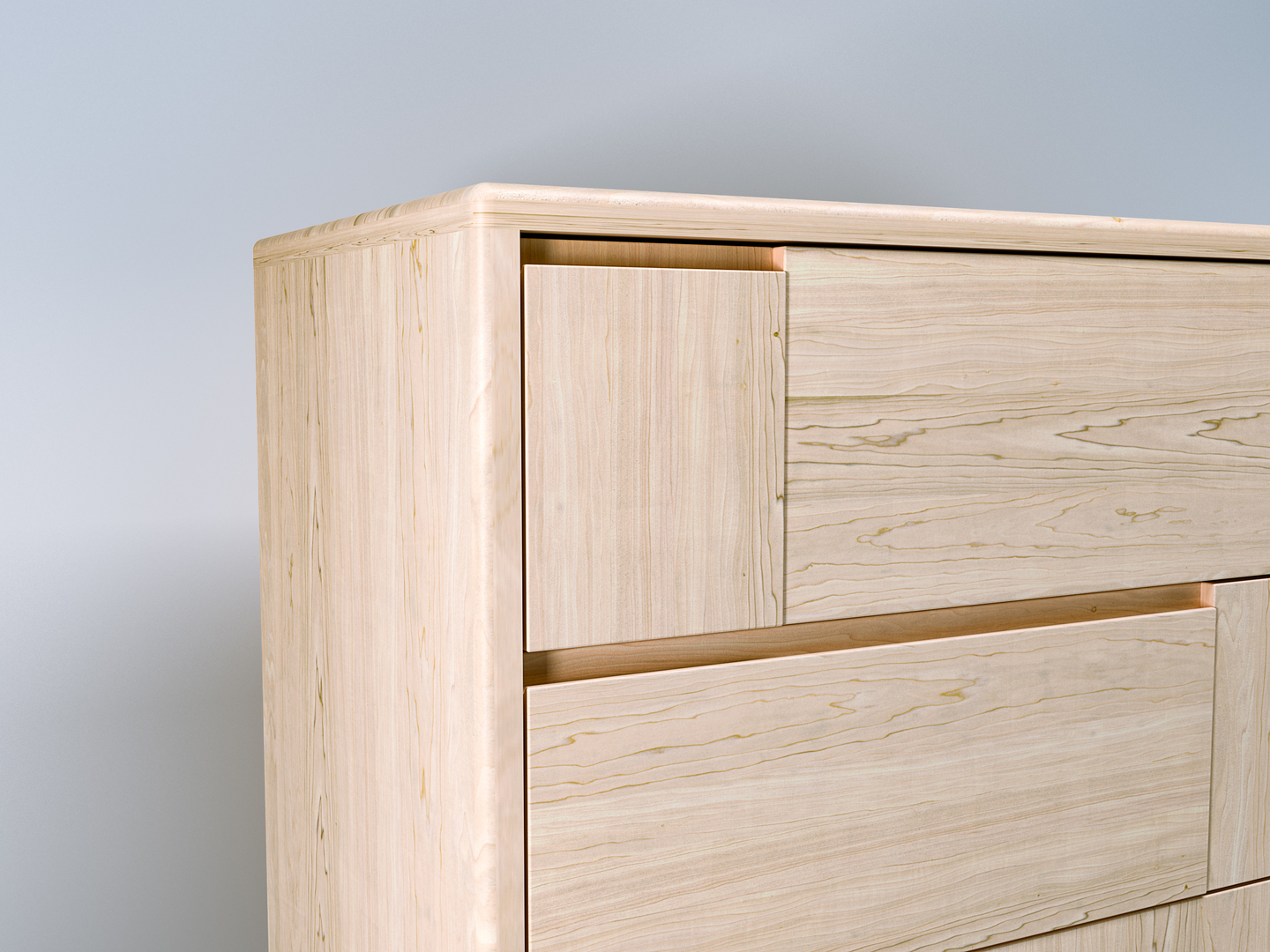La nostra cassettiera in stile scandinavo rappresenta una perfetta fusione tra l'eleganza del design nordico e il pregio dell'artigianato italiano. Questo esclusivo complemento d'arredo, ideale per la tua zona notte e realizzato in acero massello, combina estetica, qualità e durata.