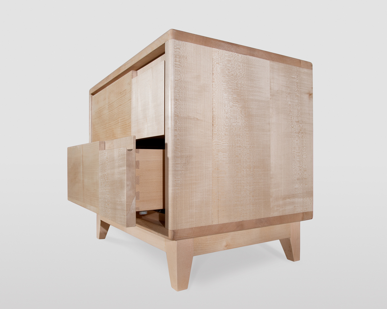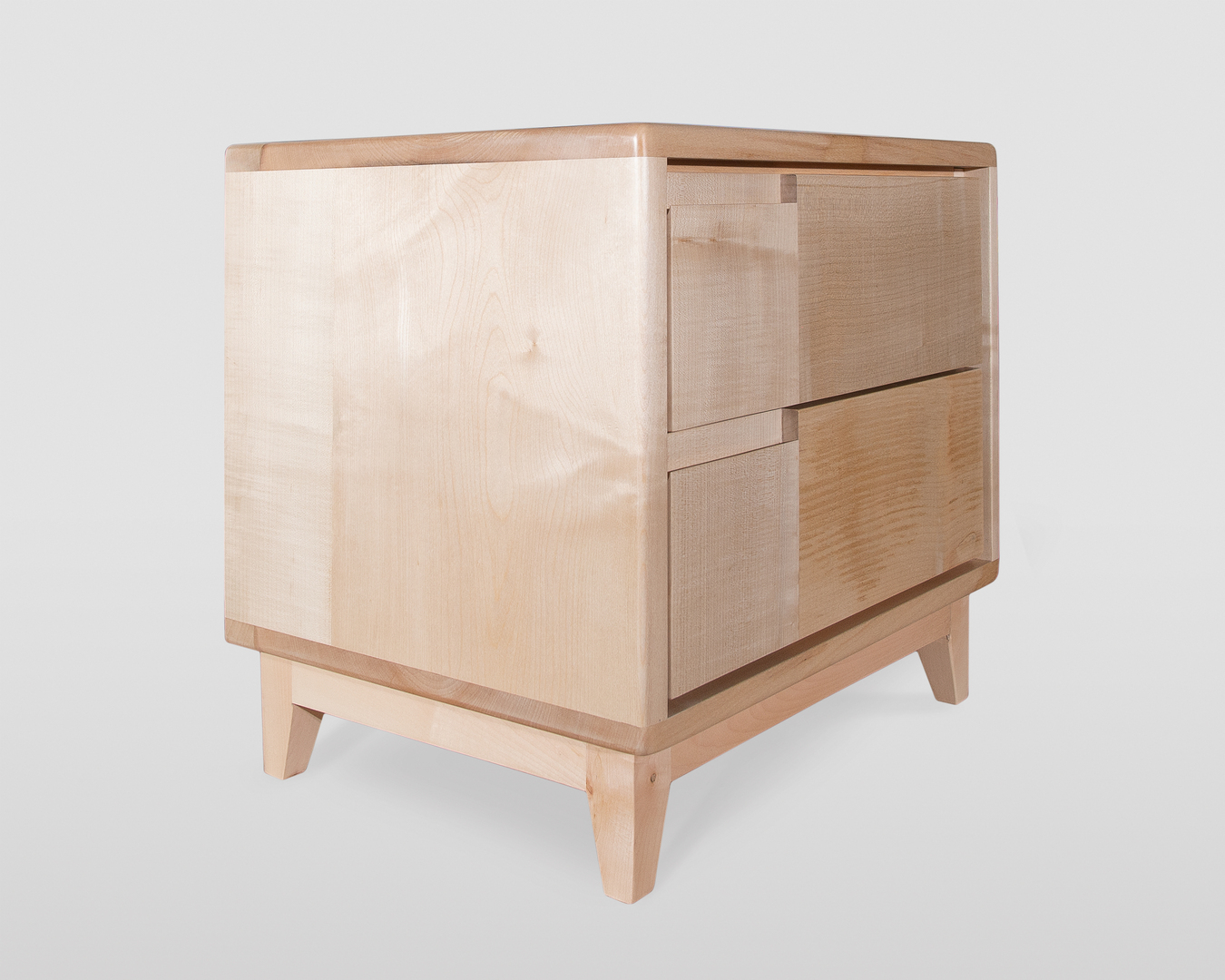 Comodino artigianale in stile scandinavo, realizzato interamente in acero massello di alta qualità. Questo elemento d'arredo per la camera da letto combina linee pulite e semplici con un'eleganza sofisticata, trasformandolo nel perfetto complemento d'arredo per valorizzare la tua camera.